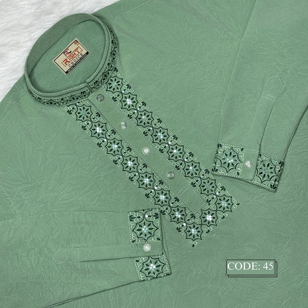 লাক্সারি কাতান পার্টি পাঞ্জাবি – অরিজিনাল কাতান কাপড়ের উপর নিখুঁত এমব্রয়ডারি কাজ করা প্রিমিয়াম কোয়ালিটির পাঞ্জাবি